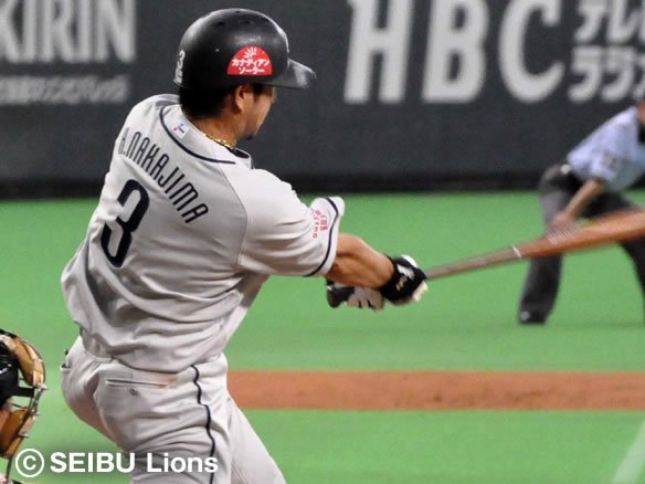 1番 田中賢 右越三 フルカウントから高めのストレートを振り抜かれると、高く上がる打球がライトを襲う。ボールはジャンプするライトのわずかに上を越えてフェンスを直撃する。バッターランナーに3塁へ到達された。 |