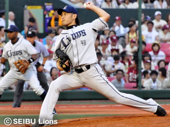 投手 武隈 1番 聖澤 四球 3-0から投じたストレートが外角低めに外れた。 |