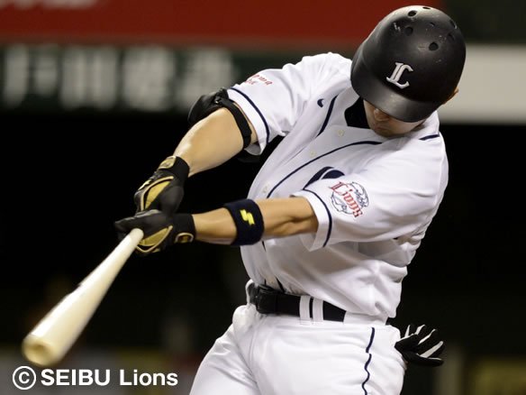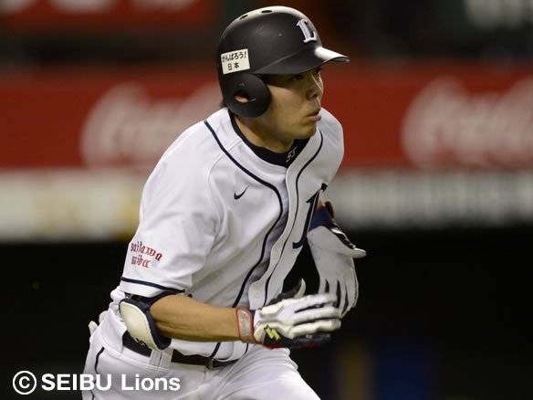 1番 栗山 左安 1-1から外角へのストレートをたたき、鋭いライナーがレフトの前で弾んだ! 栗山はこれで7試合連続ヒットを記録! |