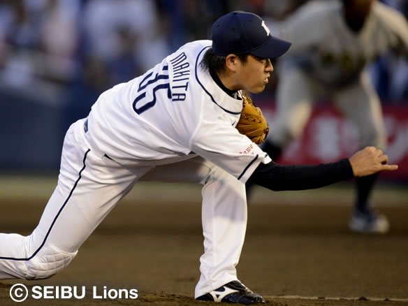 投手 牧田 4番 李大浩 遊ゴ 1-2から外角へのスライダーで泳がせたゴロは、ショートが処理した。 |