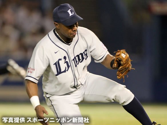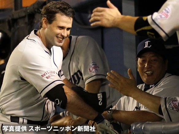 5番 カーター 左本 0-1から外角高めのストレートをはじき返すと、反対方向へ伸びていく飛球がレフトスタンド前列に飛び込んだ! カーターの来日第1号となるソロホームランで6対2。 ![]() 2