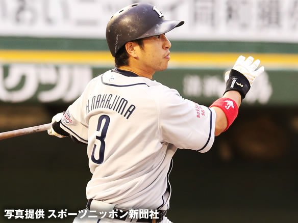 バファローズの切り札・平野のストレートを振り抜いた中村らしい一発で同点に追い付きました! 6月5日以来となる猛打賞獲得で、完全復調をアピールしています! |