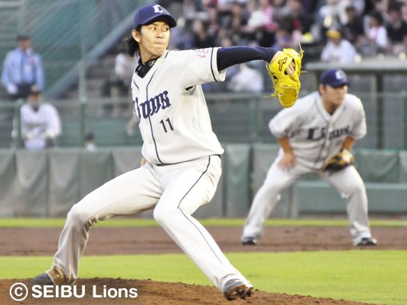 3番手としてマウンドに上がった涌井は、打ち気にはやるバファローズ打線を3人斬り。わずか4球で片付けました! |