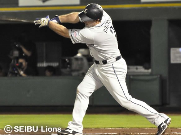 投手 木佐貫 6番 カーター 右安 1-2から外角寄り低めのフォークボールをバットの先に乗せるように打ち返した打球は右中間に上がり、追い掛けるライトの前で弾んだ! |