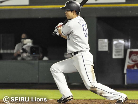 投手 木佐貫 2番 秋山 左飛 2-1から外角のストレートを逆方向に打ち返した打球は、レフトの正面に飛んでしまった。 |