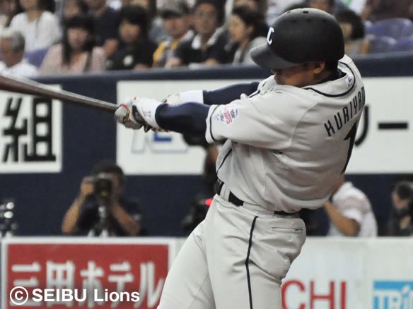 投手 井川 1番 栗山 左翼安 初球、内角寄りのストレートを反対方向へ打ち返し、ライナー性の打球をレフト線へ運んだ! |