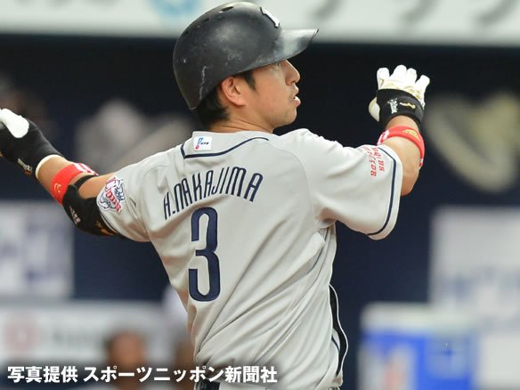 中島が大きな一発を放ち、リードを広げます! 相手打線の勢いを止め、さらに流れを引き寄せたい! |
