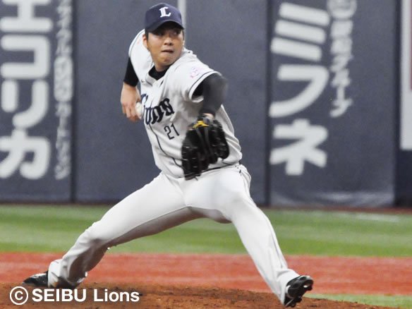 投手 岡本篤 【埼玉西武選手交代】 ピッチャー・宮田→岡本篤 |