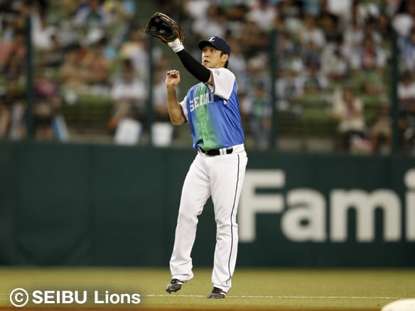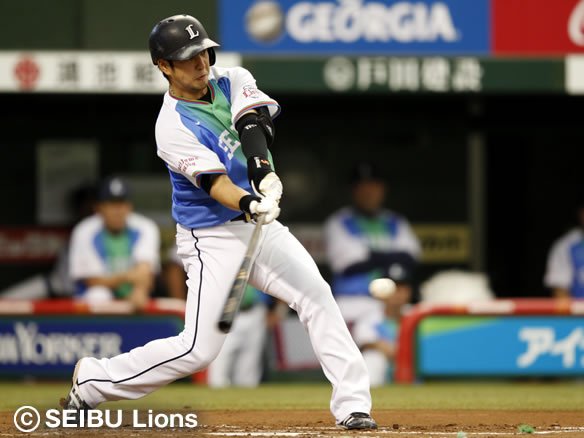 投手 ヒメネス 2番 秋山 右安 1-2から内角低めのストレートに差し込まれることなく引っ張り、鋭いライナーをライト前に飛ばした! 秋山はこれで11試合連続ヒットを記録! |