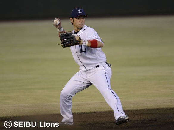 投手 ドイル 3番 中島 二飛 2-2から外角高めのカーブを高く打ち上げた打球は、後退してライト線の横で構えるセカンドに捕球された。 |