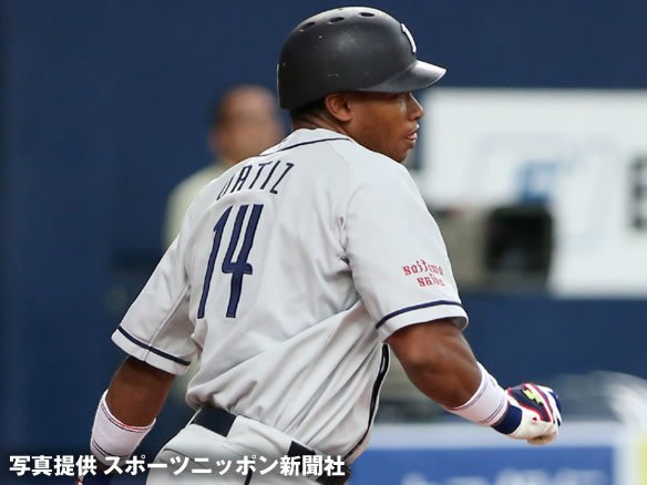 ヘルマンが自慢の足で相手の守備をかき回し、貴重な追加点を演出しました! 着実に得点を重ねる打線が、この後もつないでいきましょう! |