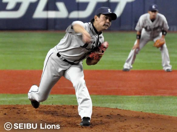 投手 岡本篤 9番 野中 左翼安 1-2から外角へのフォークを流し打ちされると、3塁線へのゴロがベースに当たって高くバウンドし、飛び込むサードの上を越えていった。バッターランナーは1塁でストップ。 |