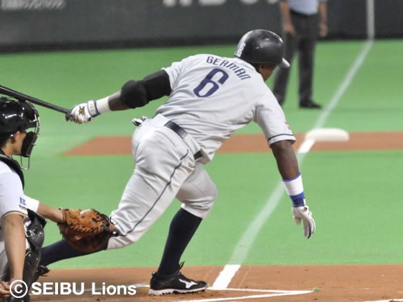 投手 ウルフ 4番 中村 左安 1-1から低めのシュートを引っ張り、球足の速いゴロが三遊間を破った! |