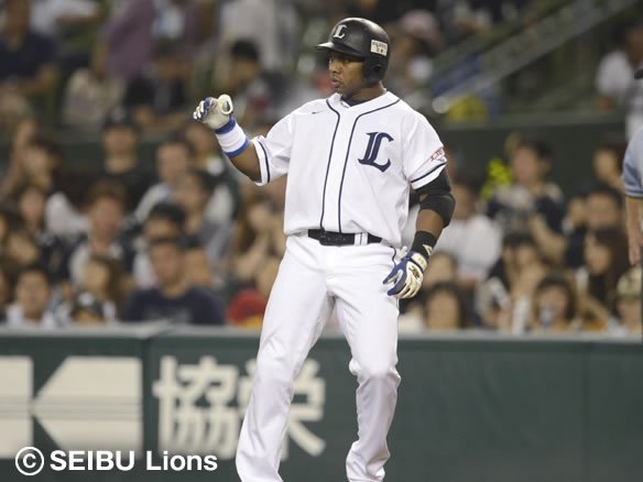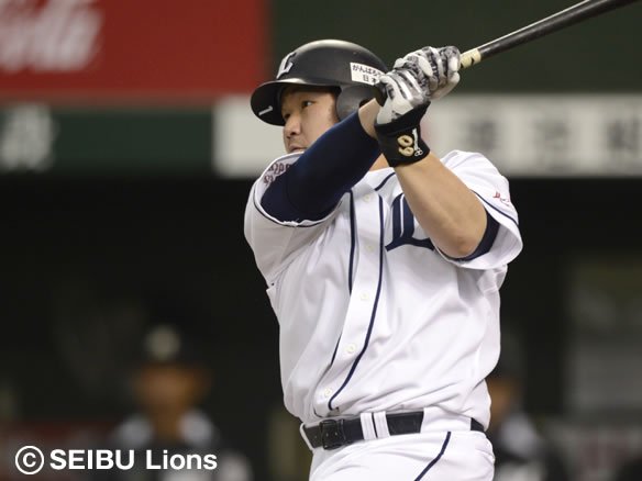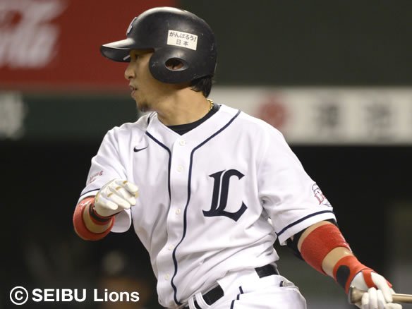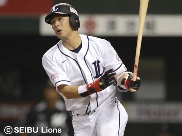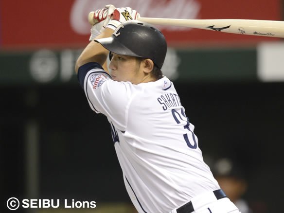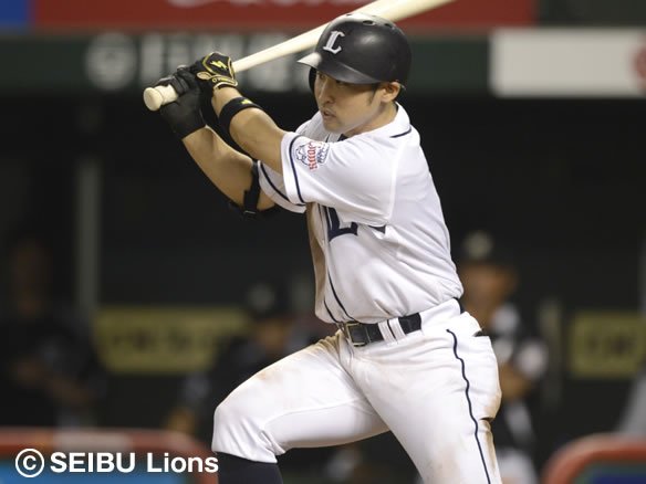 2番 秋山 左安 1-1から外角へのシュートを流し打ちすると、ライナー性の打球が左中間で弾む! レフトが弾んだ打球の処理に手間取る間に、1塁ランナーが3塁へ進み打った秋山は2塁へ進んだ! |