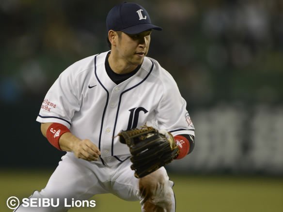 投手 岡本篤 【埼玉西武選手交代】 ピッチャー・菊池→岡本篤 |