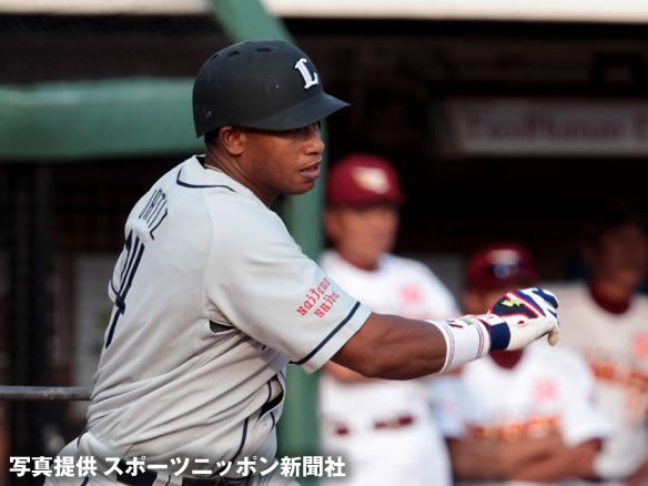5番 フェルナンデス 左安 初球、高めのストレートで詰まらせるも、フラフラと上がる打球が前進するレフトの手前で弾んだ。 |