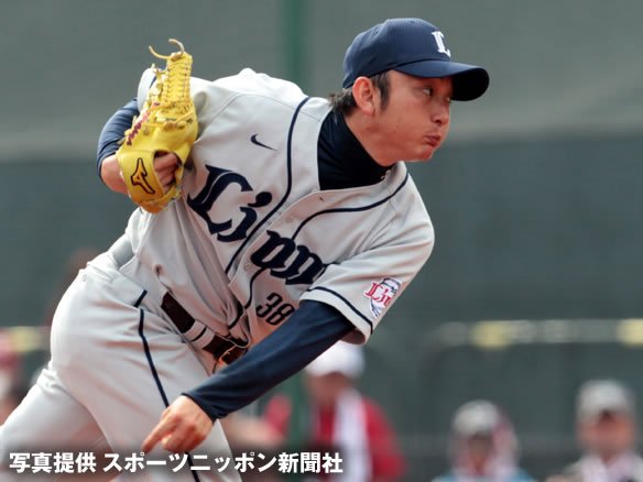 投手 岡本篤 【埼玉西武選手交代】 ピッチャー・松永→岡本篤 |
