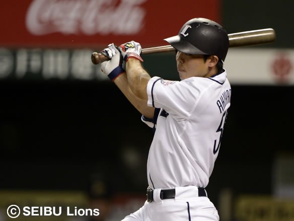 2番 秋山 中安 1-1から高めに浮いたスライダーを打ち返し、ライナー性の打球がセンターの前で弾む!  |
