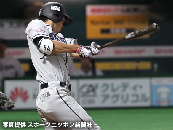 4番 中村 中安 1-0から外角への変化球を打ち返し、上がった打球が左中間で弾んだ! 中村が6月5日以来となる1試合4安打を記録! |