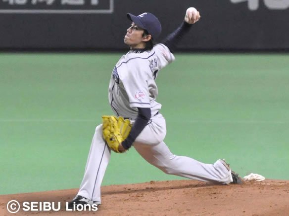 投手 ウルフ 2番 秋山 中飛 0-1から内角高めのストレートに差し込まれ、センターへの浅い飛球に打ち取られる。 |