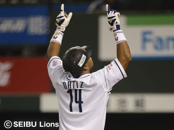 5番 オーティズ 左本 1-2から低めのストレートをすくい上げると、打った瞬間にそれと分かる特大の当たりがライオンズファンの待ち受けるレフトスタンド中段へ! オーティズの今ステージ1号ソロで2対3! これぞ執念! これぞ底力! 頂点を狙う獅子たちは最後まで諦めない! ![]() 2