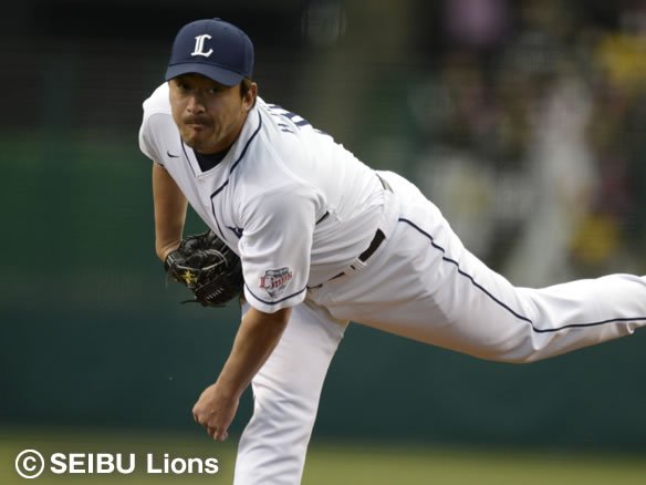 1番 西岡 左中間3ベースヒット 高めのストレートを振り抜かれると、飛球が左中間の深い所を襲う。バッターランナーは3塁へ。 |