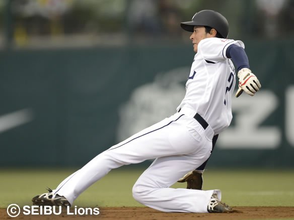 好調・オーティズのヒットを皮切りに、秋山、上本のタイムリーヒットで逆転に成功しました! つながりを見せ始めたライオンズ打線が、藤浪にプロの厳しさをたたき込みます! |