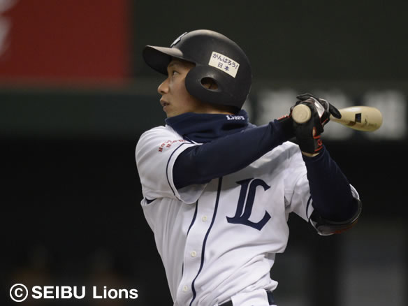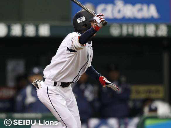 6番 浅村 左安 レフトへのヒットを放つ 1塁 |