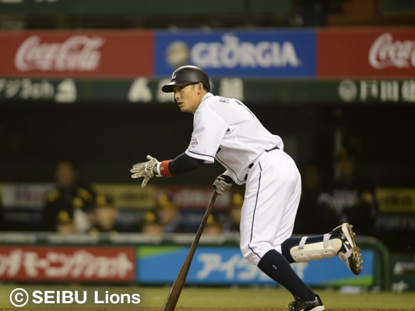 3番 内川 左安 レフトへのヒットを放つ 1塁 |