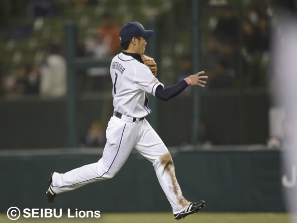 2番 秋山 左邪飛 ファウルフライを内川(左)が捕球してバッターアウト 2アウト |