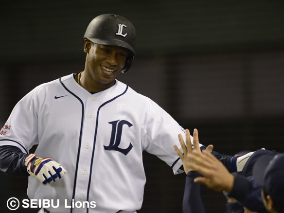 3番 栗山 左安 レフトへのヒット 1塁 |