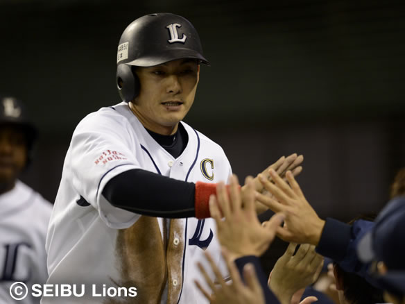 3番 栗山 四球 外角の変化球を見送りフォアボールを選ぶ 1塁 |