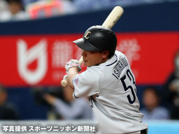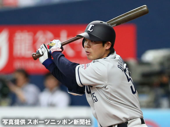 2番 秋山 左安 レフトへのヒットを放つ 1塁 |