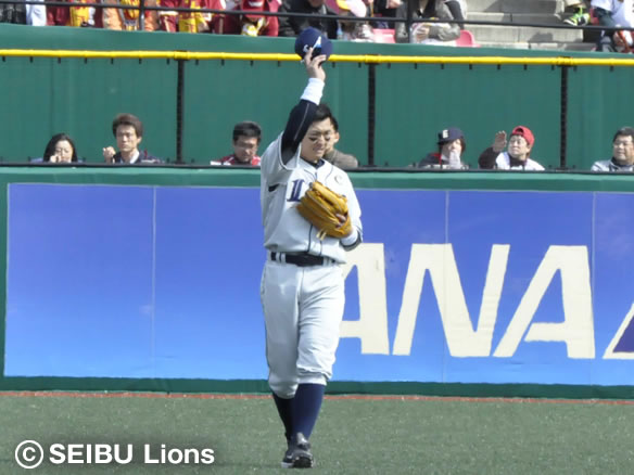 1番 片岡 四球 低めのシュートを見送りフォアボールを選ぶ 1,3塁 |