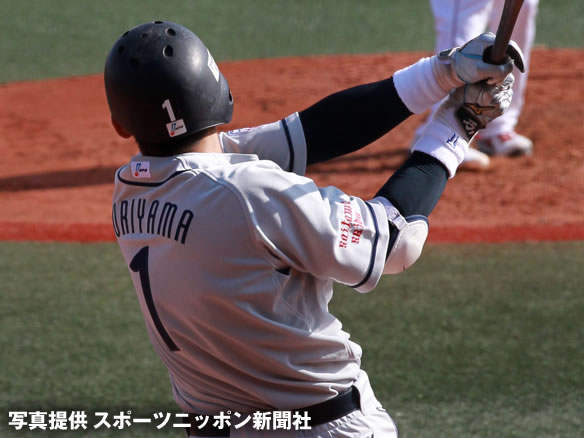 投手 片山 3番 栗山 左安 レフトへのヒットを放つ 1塁 |