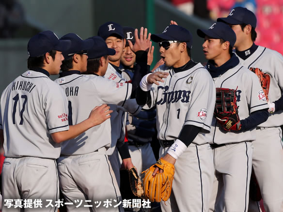 菊池のプロ初完封を歓喜のハイタッチで祝福!