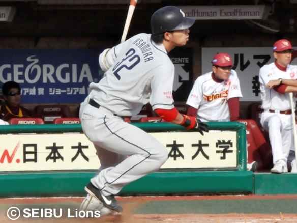 投手 菊池 2番 秋山 左安 レフトへのヒットを放つ 1塁 |