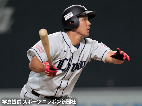 8番 中島卓 左安 レフトへのヒットを放つ 1,2塁 |