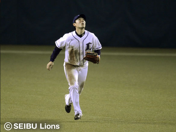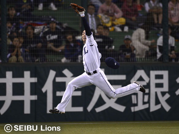 秋山は井口の飛球を追いかけランニングキャッチ!