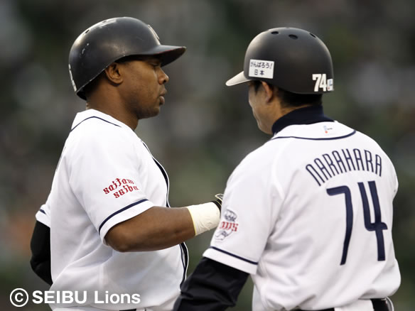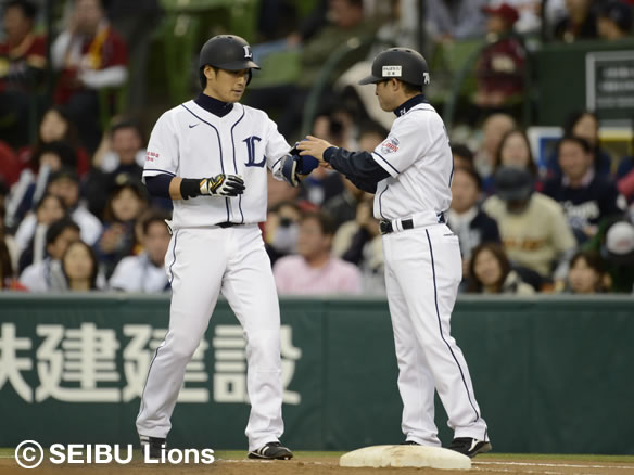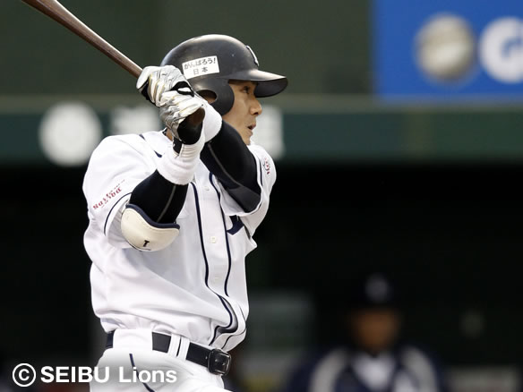 3番 栗山 四球 内角のストレートを見送りフォアボールを選ぶ 1塁 |