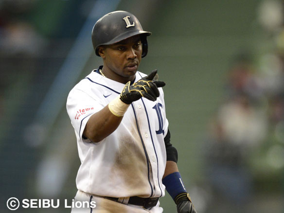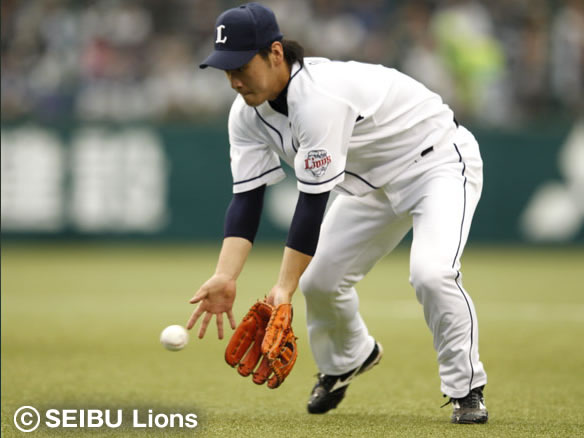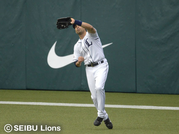 3番 栗山 右翼二 ライト線をを突破するタイムリーツーベースで、1塁から秋山が生還。勝ち越し! 西2-1楽 2塁 ![]() 2
