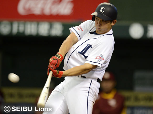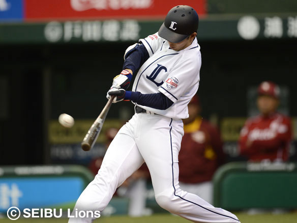 栗山は勝ち越しの適時二塁打を右翼線へ運ぶ!