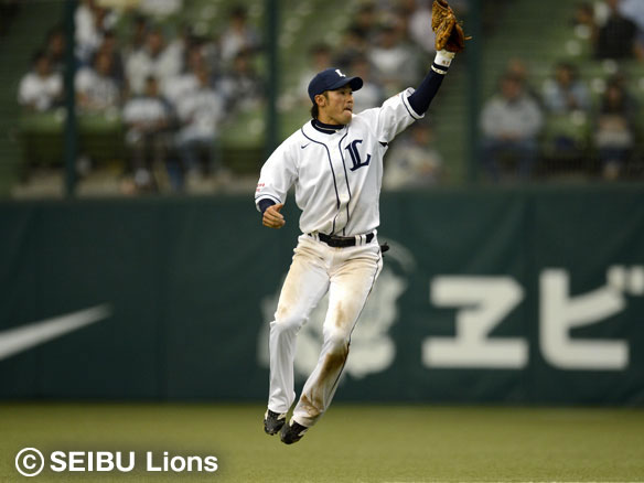 6番 浅村 左越二 ランナー1,2塁からレフトへのタイムリーツーベースでライオンズ先制!浅村らしい思い切りの良いスイングで、ついに試合を動かした! 西1-0日 2,3塁 ![]() 1