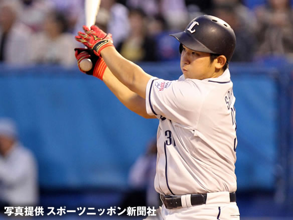 2番 秋山 中安 2アウト2塁の3-1からセンターへのタイムリーヒット!浅村が足を生かして追加点に絡む! ヤ0-4西 1塁 ![]() 0