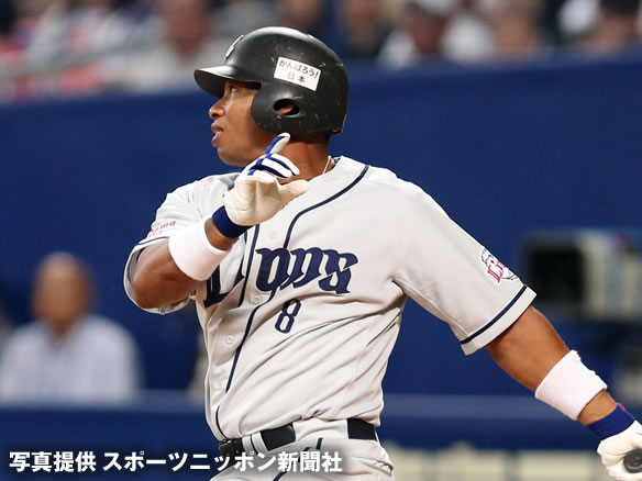 2番 秋山 中安 センターへのヒットを放つ 1塁 |