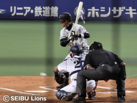 6番 井端 四球 外角のスライダーを見送りフォアボール。ライオンズ、満塁のピンチをまねく 満塁 |