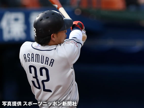 4番 浅村 左中二 フェンス直撃のツーベースを放つ |