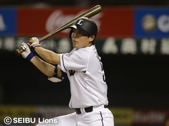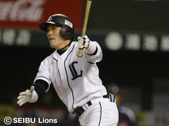 秋山の打球はフェンスへ届くレフト2ベースヒット!