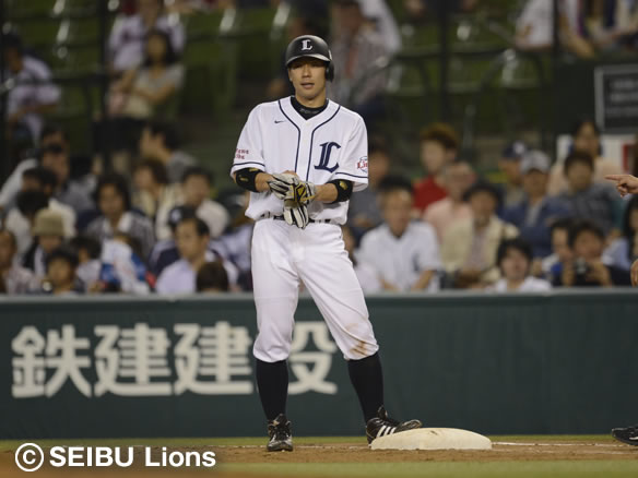 1番 秋山 右中二 ライトへのツーベース 2塁 |