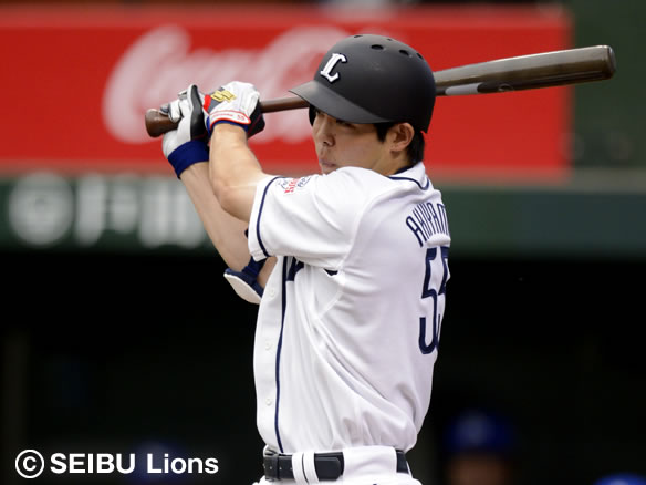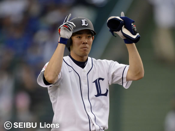 1番 秋山 左二 レフトへの二塁打 2塁 |